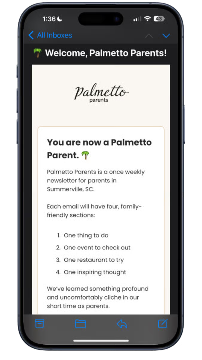 The #1 weekly newsletter for Summerville Parents. Trusted by thousands, written by locals.